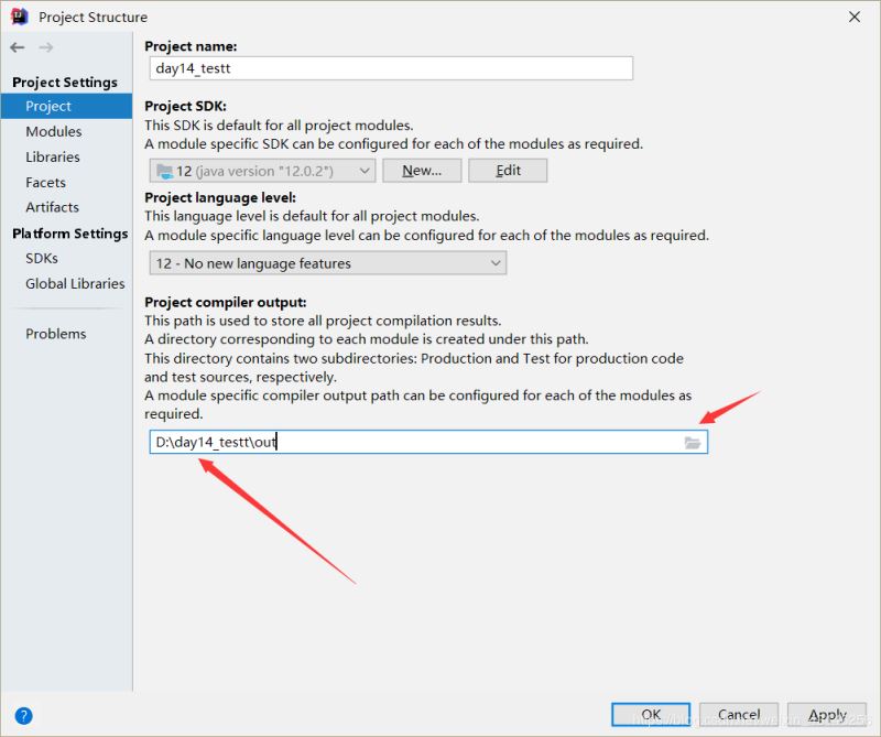 點擊確定后會跳到Project Structure(如果沒有需自己打開),發(fā)現(xiàn) Project Compiler output為空,在項目下新建out文件夾,并指定這個文件夾