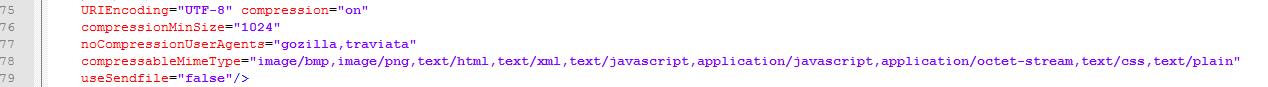 4、配置gzip,同樣在server.xml文件中進(jìn)行設(shè)置,添加代碼