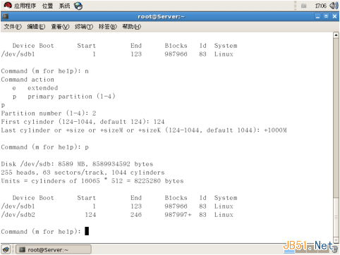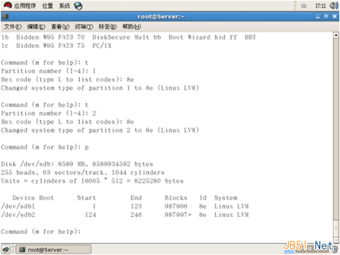 2、給磁盤(pán)分區(qū)(創(chuàng)建PV) 在/dev/sdb上劃分兩個(gè)分區(qū)