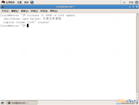 6、用lvcreate –L 500M –n lv01 vgdate 命令從VG vgdate中創(chuàng)建一個(gè)大小為500M的名為lv01的LV