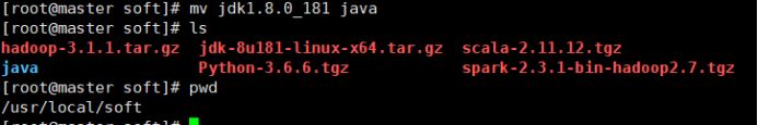 3.給jdk重命名,并查看當前位置:mv jdk1.8.0_181 java
