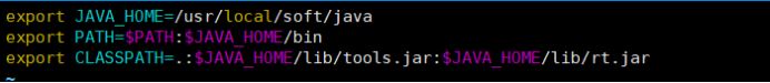 export JAVA_HOME=/usr/local/soft/java export PATH=$PATH:$JAVA_HOME/bin export CLASSPATH=.:$JAVA_HOME/lib/tools.jar:$JAVA_HOME/lib/rt.jar
