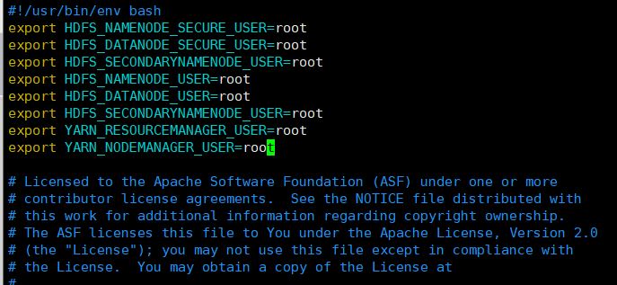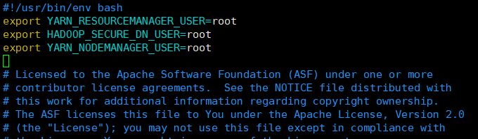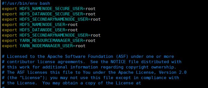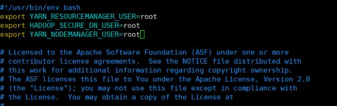 export HDFS_NAMENODE_SECURE_USER=root export HDFS_DATANODE_SECURE_USER=root export HDFS_SECONDARYNAMENODE_USER=root export HDFS_NAMENODE_USER=root export HDFS_DATANODE_USER=root export HDFS_SECONDARYNAMENODE_USER=root export YARN_RESOURCEMANAGER_USER=root export YARN_NODEMANAGER_USER=root