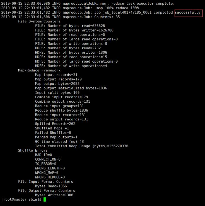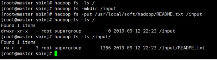 hadoop jar/usr/local/soft/hadoop/share/hadoop/mapreduce/hadoop-mapreduce-examples-3.1.1.jar wordcount /input /output