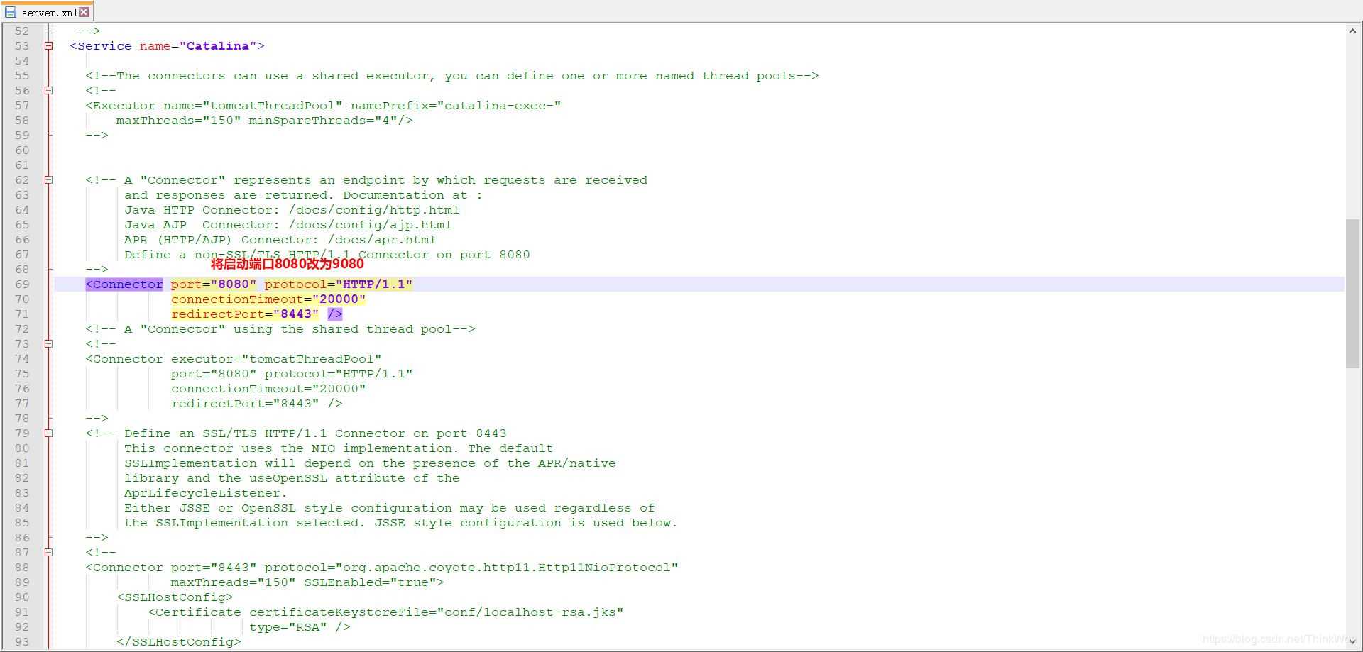 <Connector port="9080" protocol="HTTP/1.1"