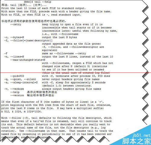 5、最后如果你想了解更多,可通過輸入命令 tail --help 來獲得更多。