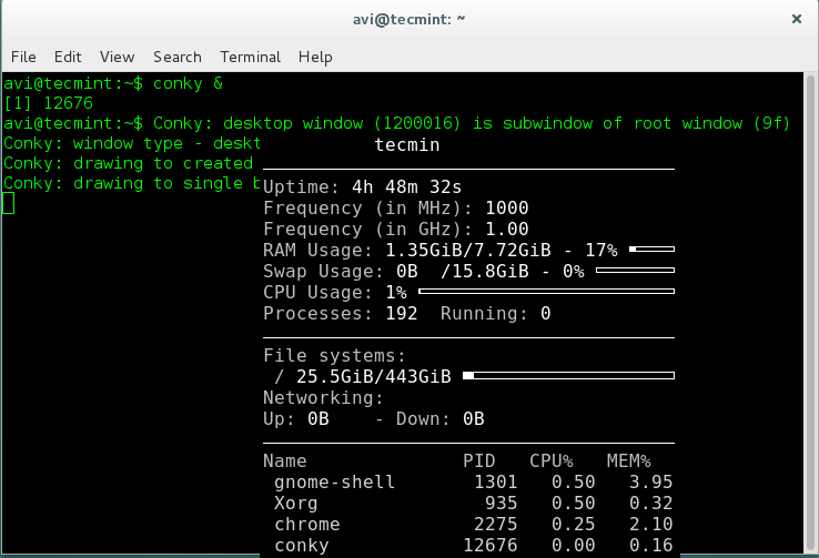 注: 在 Fedora/CentOS 上安裝 conky 之前,你必須啟用 EPEL 軟件倉庫。