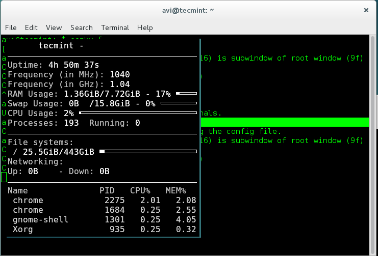 這里我將在我的 Debian Jessie 系統(tǒng)中運行一個由第三方寫的 conky 腳本,以此來進(jìn)行測試: