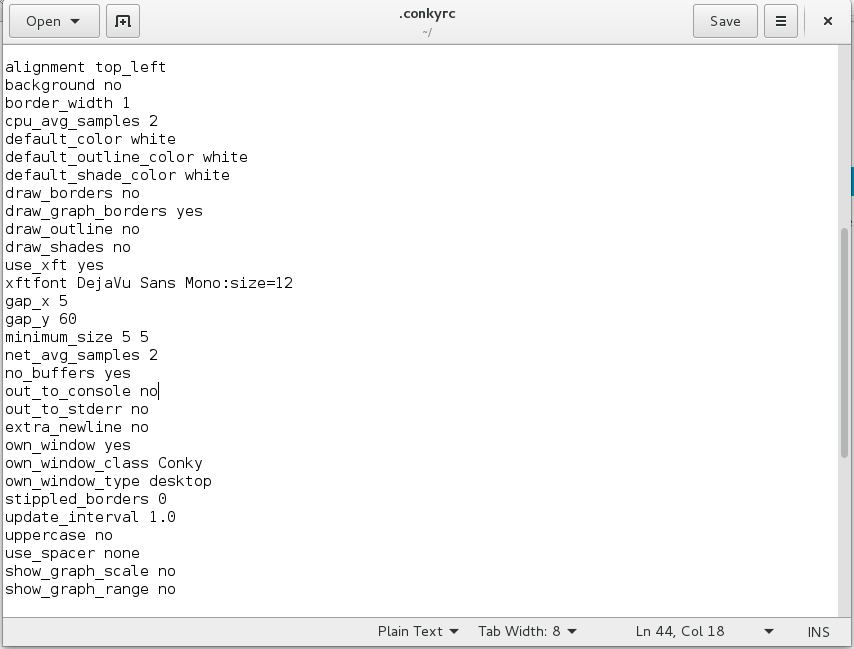 你可能想編輯位于你的家目錄的 conky 的配置文件,這個配置文件的內(nèi)容是非常容易理解的。