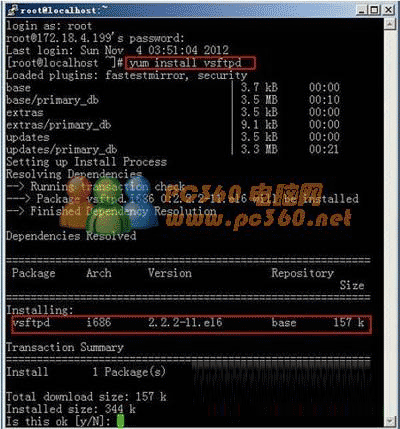 輸入yum install vsftpd 最后按y確認安裝。當(dāng)出現(xiàn)“Complete!”時意味著安裝完成。