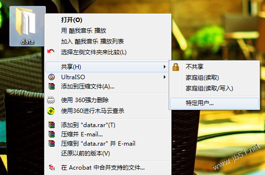 對(duì)你要共享的文件夾右鍵共享,特定用戶(hù),選擇用戶(hù),完成即可。