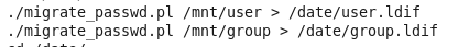 16,、分別使用./migrate_passwd.pl ./migrate_group.pl編譯我們已經(jīng)導出的ldap用戶和組文件: /mnt/user /mnt/group分別是從/etc/passwd /etc/group 導出的ldap用戶和組文件