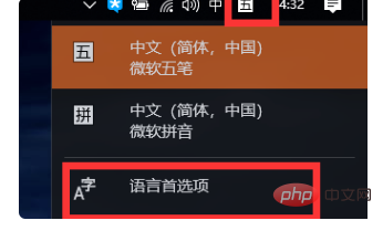 1、在工具欄中,找到輸入法圖標(biāo),左鍵點(diǎn)擊,彈出對(duì)選擇框中,選擇“語(yǔ)言首選項(xiàng)”