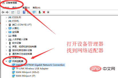 下一步,打開電腦的【設(shè)備管理器】功能,如圖所示,然后在下面找到【網(wǎng)絡(luò)適配器】功能,點擊展開。