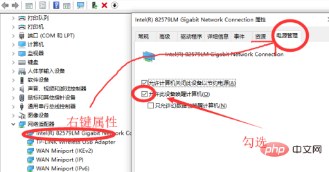 然后右鍵點擊第一個,進入屬性,如圖所示,在電源管理中,勾選【允許此設(shè)備喚醒計算機】,下次電腦黑屏即可喚醒啦。