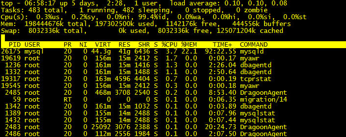 該命令直觀的顯示了服務(wù)器在過(guò)去15分鐘,5分鐘,1分鐘內(nèi)的平均負(fù)載