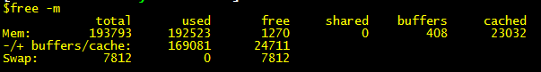 used:Mem行中的used - buffers-cached,實(shí)際使用的內(nèi)存總量