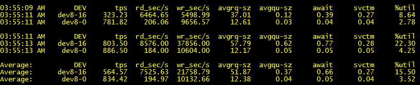 | tps | blk_read/s | blk_wrtn/s | blk_read | blk_wrtn |