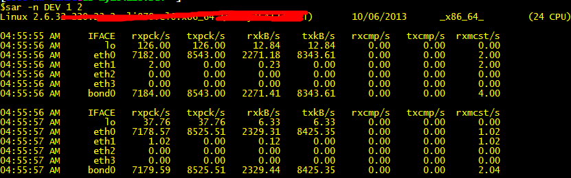 通過(guò)sar命令可以查看服務(wù)器的各個(gè)硬件的實(shí)時(shí)運(yùn)轉(zhuǎn)情況。由于顯示的一些參數(shù)含義與其它命令類似,這里就不一一詳細(xì)介紹,只重點(diǎn)介紹