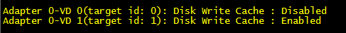 sudo /opt/MegaRAID/MegaCli/MegaCli64 -LDGetProp -DskCache -LALL -aALL