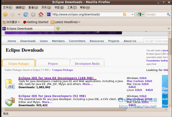 就可以得到eclipse-jee-galileo-SR1-linux-gtk.tar.gz壓縮包。