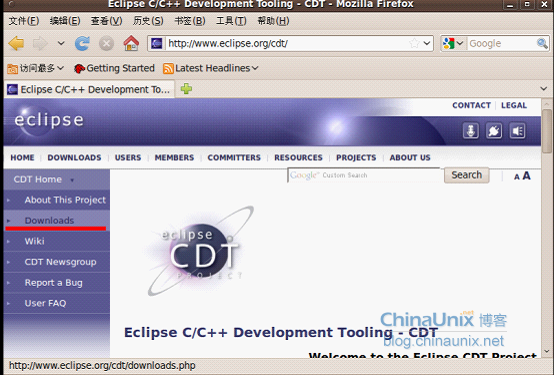 網(wǎng)址:www.eclipse.org/cdt/,點(diǎn)擊“Downloads”