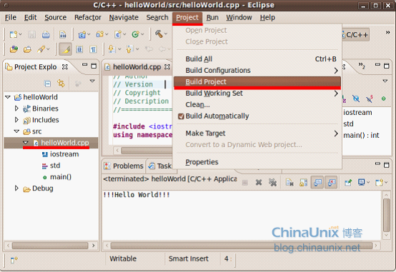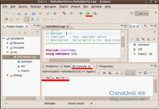 到現(xiàn)在為止,一個(gè)helloWorld.cpp程序已經(jīng)跑起來了。