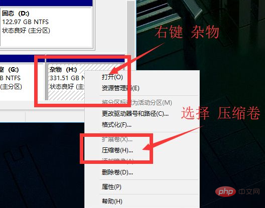 2、右鍵點(diǎn)擊,選擇壓縮卷;