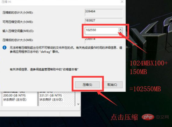 3、設(shè)置壓縮空間,點(diǎn)擊壓縮;