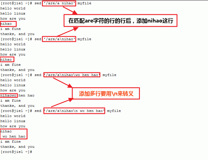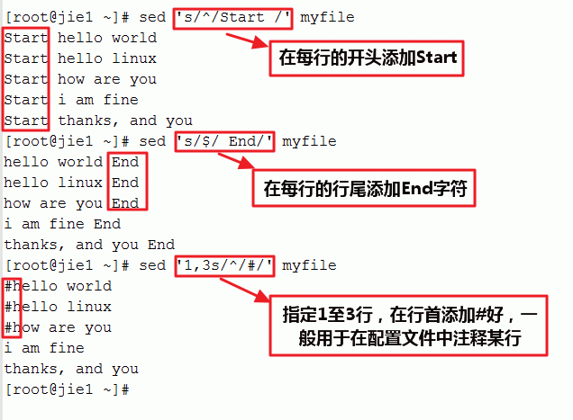 [root@jie1 ~]# cat >> myfile << EOF