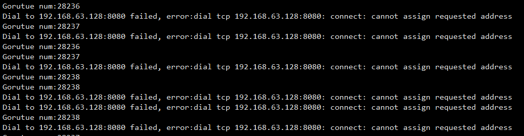golang的標(biāo)準(zhǔn)庫文檔中么有對錯誤信息的解釋,從錯誤信息來看,是分配地址失敗,于是想是不是端口地址范圍限制了。