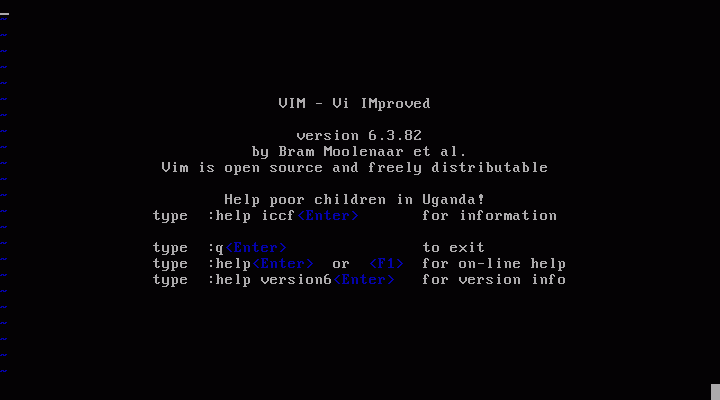 上圖為在CUI下輸入“vi”命令后,vi被啟動的狀態(tài)。