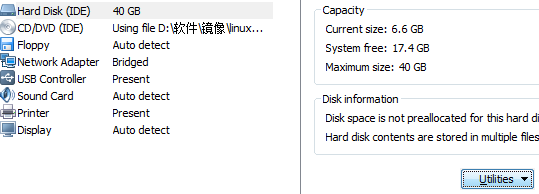 擴大虛擬機的空間為"40G"(根據個人需要填寫空間大小)。但是linux下面并不可見。