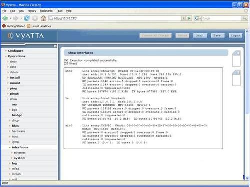 Vyatta軟件包括對常用網絡接口、工業(yè)標準路由協議和管理協議的支持。與先前的開源軟件路由項目不同,所有的這些特性都可以通過單個的命令行接口(CLI)或是基于web的圖形用戶界面來配置。Vyatta軟件可以以自由社區(qū)版本獲得,它也以捆綁軟件訂購的形式提供,這包含了維護、升級和技術支持。