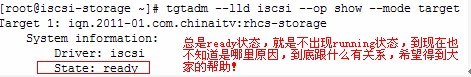 實際上tgtd并沒有啟動成功,用ps查看是查看不到tgtd服務(wù)進程的,要想解決此問題,是因為有個/var/lock/subsys/tgtd文件存在,只需刪除掉即可。