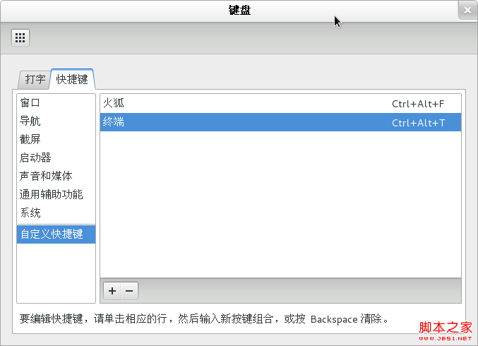活動(dòng)-->應(yīng)用程序-->系統(tǒng)設(shè)置-->鍵盤-->快捷-->自定義快捷鍵
