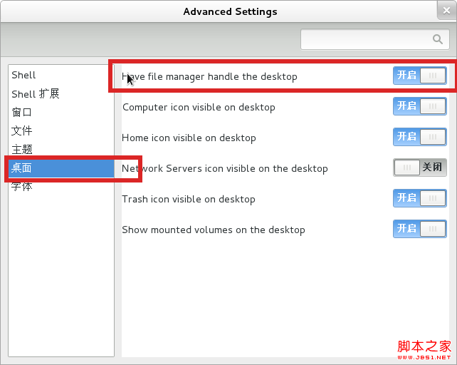 進(jìn)入“桌面”菜單,開啟 Have file manager handle the desktop