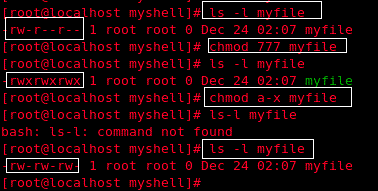 #chmod777myfile //為所有用戶賦予了該文件的所有權限。