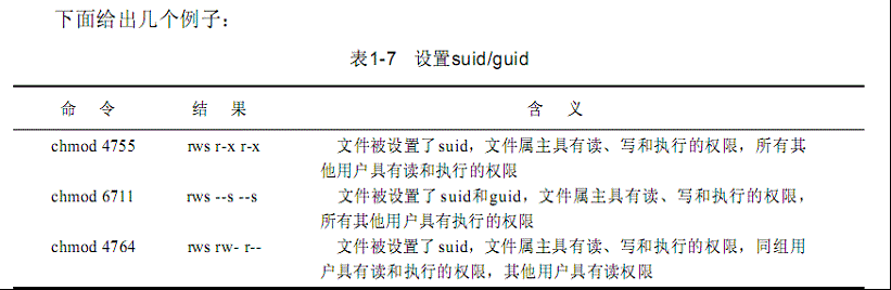 如文件myfile具有741的權限,要對其設置suid,只需在其權限數字前加4(guid是加2,兩個都設置就是4+2=6),