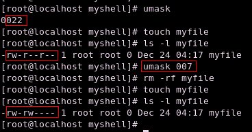 可以看到,新創(chuàng)建的文件myfile的權限是:rw-r--r--。