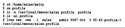 .profile就是/usr/local/menus/sales.profile的快捷方式了,這樣很方便,比如我們有多個用戶,比如50個,可以為他們分別創(chuàng)建一個.profile文件,都指向這同一個sales.profile文件,以后我們修改一個sales.profile就可以了,不用對每個用戶的.profile做修改。