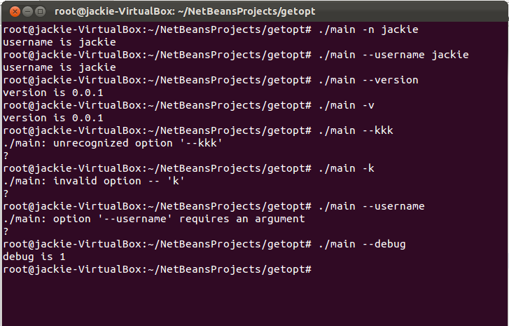 說明一下:getopt_long_only,這個(gè)函數(shù)功能與getopt_long相同,只是可以使用’-‘后面跟長選項(xiàng)名,如./main -username jackie