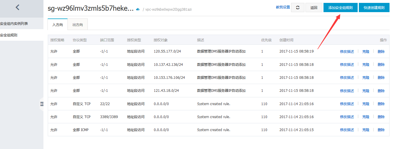 10、因?yàn)槭前⒗镌品?wù)器,所以還要去阿里云上面給服務(wù)器添加3306的安全組,不然一樣遠(yuǎn)程不過去 ;