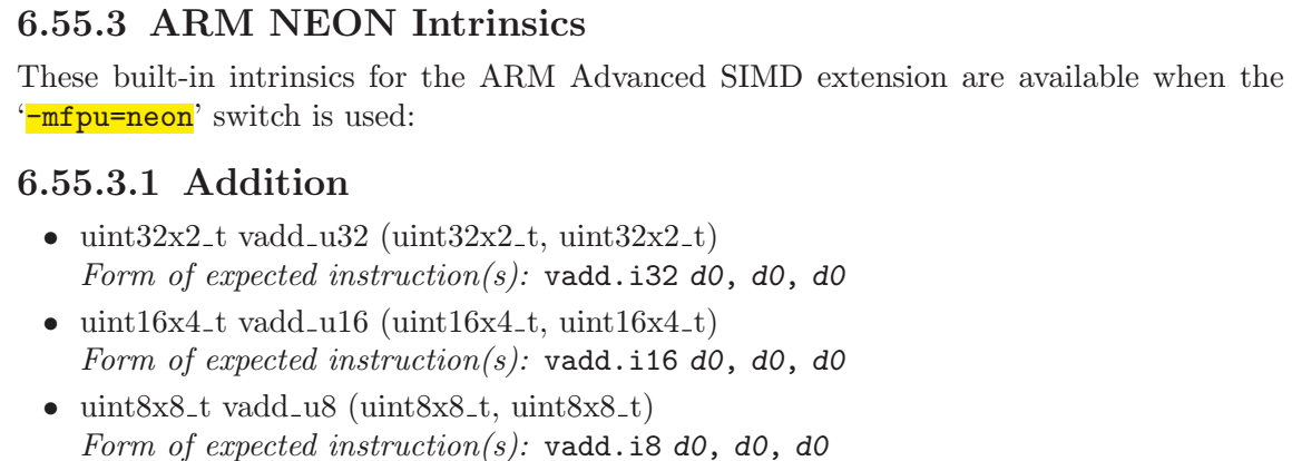 跟NEON指令對(duì)應(yīng),詳見(jiàn)gcc手冊(cè)。