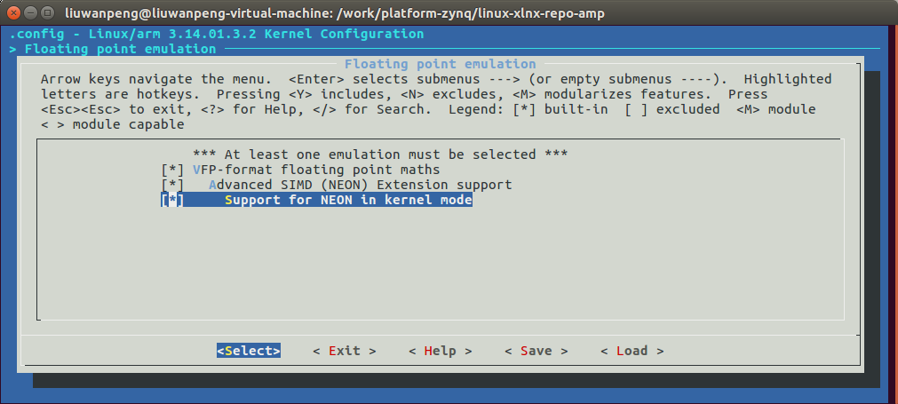 未使能“Support for NEON in kernel mode”時(shí)會(huì)報(bào)錯(cuò): mmi_module_amp: Unknown symbol kernel_neon_begin (err 0) mmi_module_amp: Unknown symbol kernel_neon_end (err 0)