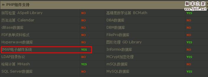 在瀏覽器里面輸入http://ip/p.php,打開探針,安裝IMAP模塊前:
