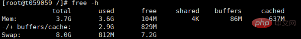 很清晰明白地顯示出了總內(nèi)存多少,已使用多少,還剩下多少。這里可以看到Swap的used已使用了811Mb,服務(wù)器上跑了一個多線程下載音頻的進(jìn)程,物理內(nèi)存已經(jīng)不夠用了,所以從磁盤中虛擬出一部分的內(nèi)存。當(dāng)然我們可以使用free -g、free-h來查看,只不過展示的內(nèi)存單位不一樣,free -h會以便于閱讀的單位形式展示內(nèi)存大小。