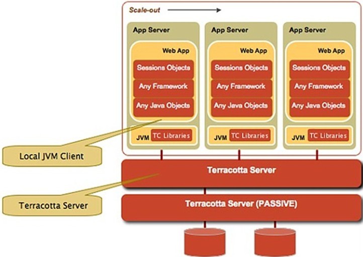 原理:Terracotta的基本原理是對于集群間共享的數(shù)據(jù),當(dāng)在一個節(jié)點(diǎn)發(fā)生變化的時候,Terracotta只把變化的部分發(fā)送給Terracotta服務(wù)器,然后由服務(wù)器把它轉(zhuǎn)發(fā)給真正需要這個數(shù)據(jù)的節(jié)點(diǎn)。可以看成是對第二種方案的優(yōu)化。
