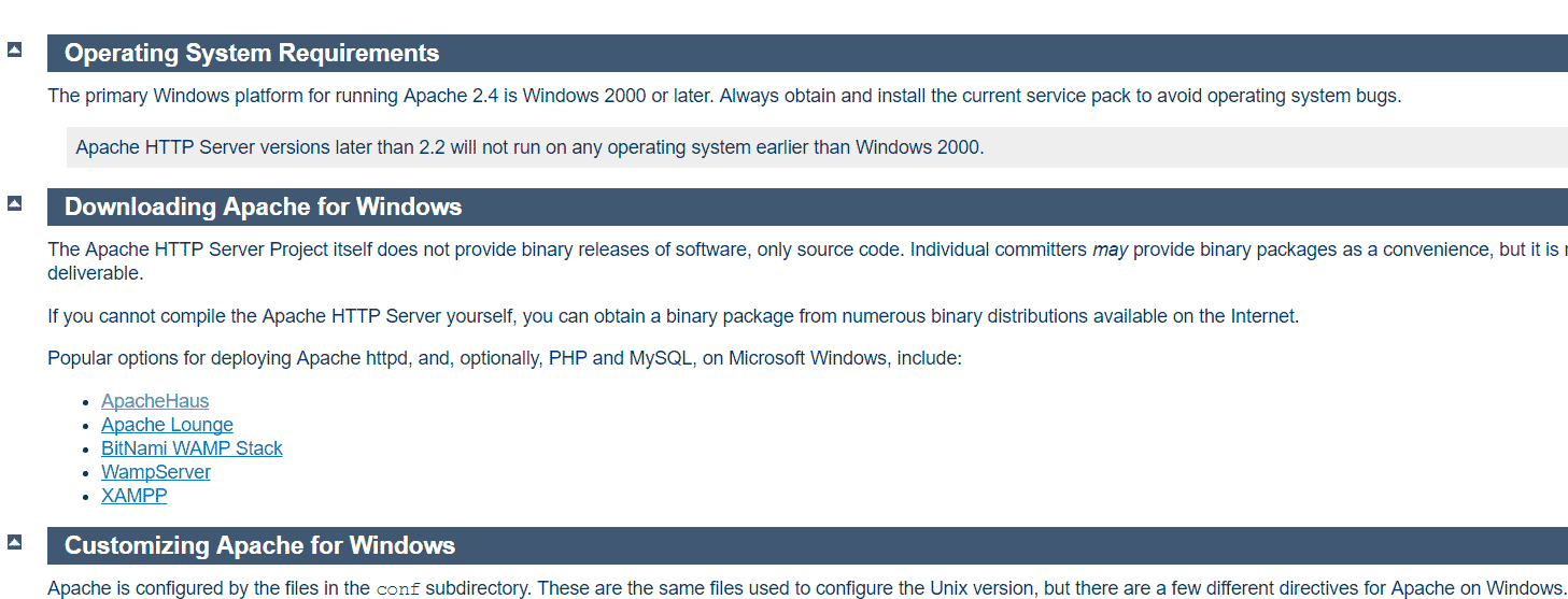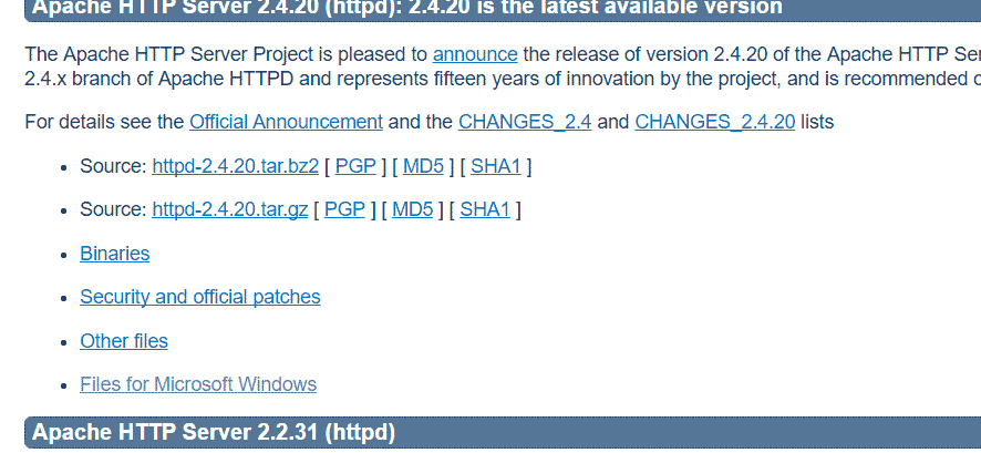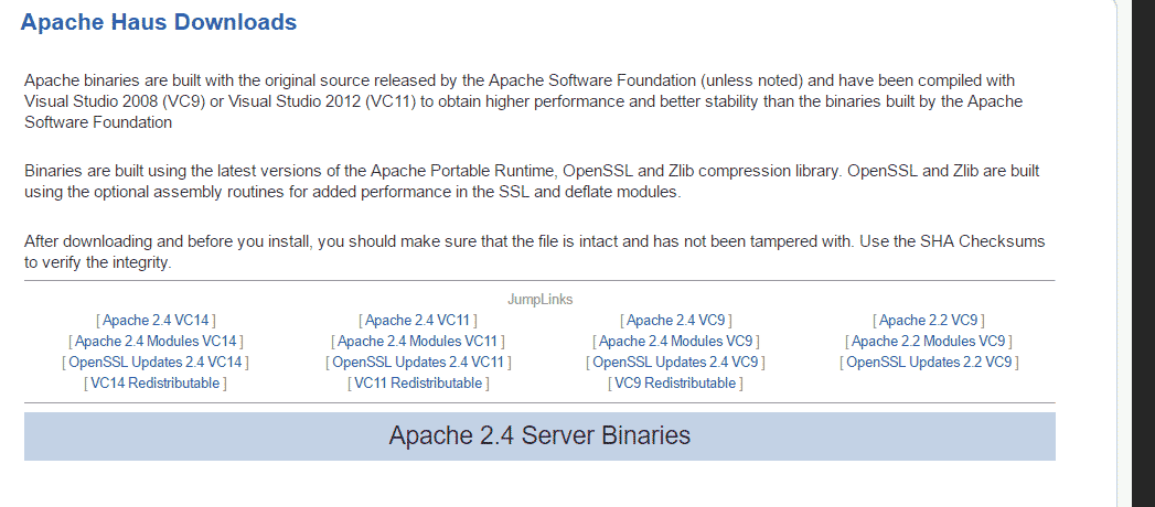 由于Apache HTTP Server官方不提供二進(jìn)制(可執(zhí)行)的發(fā)行版,所以我們選擇一些貢獻(xiàn)者編譯完成的版本,我們選擇第一個(gè)ApacheHaus