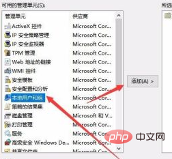 在打開的管理窗口中,點擊左側邊欄的“本地用戶和組”一項,然后點擊“添加”按鈕。